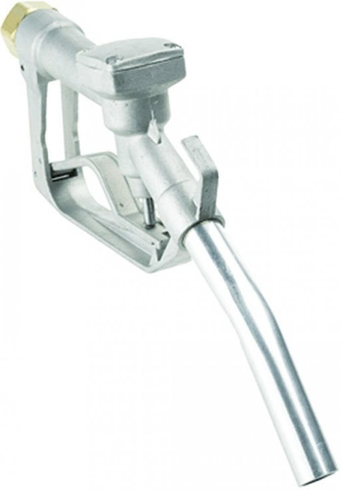 Aluminiová výdejní pistole pro naftu a lehké topné oleje, připojení G 1" (vnitřní závit) a otočný kloub, max.průtočné množství 100 l/min, vnější průměr ocelové pozinkované výtokové trubice 25,3 mm, těsnění NBR, max. tlak 5 bar, rozměry 320x165x50 mm, hmotnost 658 g.