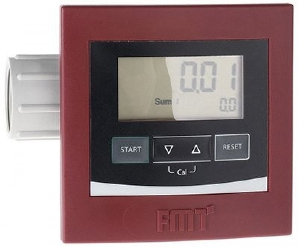 Digitální průtokoměr k elektrickým axiálním čerpadlům 12/24/230 V pro naftu a topné oleje PREMAxx a MOBIFIxx, průtočné množství 10 - 55 l/min, teplotní rozsah -10oC až +60oC, max.tlak 2 bar, 4-místný se 2 decimálními místy, jednotlivě vyvolatelných 9 různých dílčích mezisoučtů, každý mezisoučet lze vynulovat, přesnost ± 1 %, kalibrovatelný, materiál skříně POM (acetalhomopolymer), připojení G 1" (vnější závit) a G 1" (vnitřní závit), montážní poloha libovolná (po 90o), baterie Lithium SeZe AA, 3,6 V, rozměry 120 x 110 x 60 mm, hmotnost 300 g.