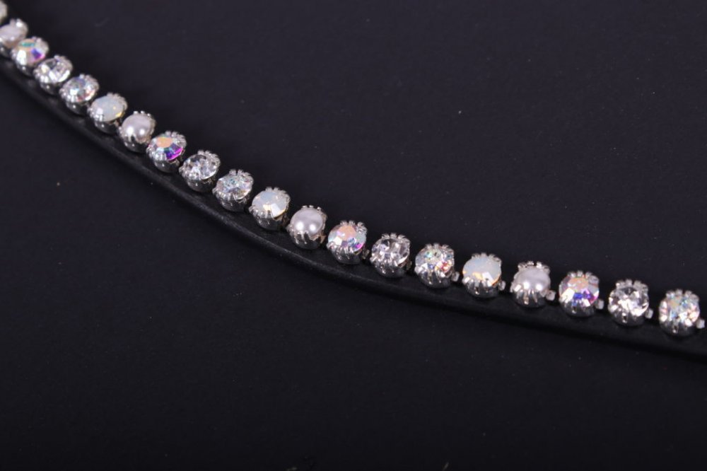 Kvalitní kožená čelenka k uzdečce FaySport PresTeq v černém provedení s bílými kamínky. Čelenka se vyrábí ve více barevných variantách. PresTeq používá originální krystaly Swarovski, které optimálně odráží světlo a navíc krásně září. Díky připínacímu systému PressTEQ je výměna čelenky velmi snadná. Už nemusíte rozebírat celou uzdečku, ale můžete jednoduše odepnout druky (cvočky) a čelenku vyměnit. Za pár sekund získáte nový vzhled, který odpovídá vašemu oblečení nebo denní náladě.