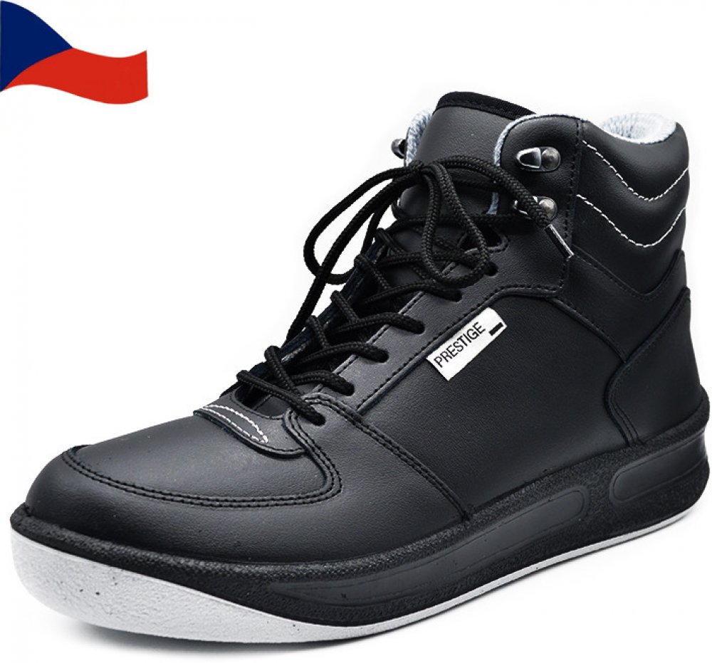 Zimní kotníková prestižka je předurčena pro nošení v chladném a vlhkém počasí. Celokožené provedení s hydrofobní úpravou spolehlivě ochrání obuv před promáčením a teplá podšívka zahřeje chodidla i v hlubokých mrazech. Komfortní úpletová stélka je vyjímatelná a usnadňuje tak údržbu a vysoušení obuvi. Podešvová nášlapná část je stejná jako u klasických prestižek.