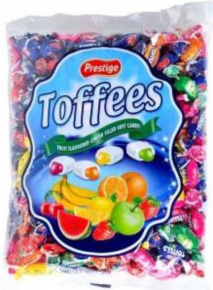Prestige Toffees 1kg - mixSMĚS MĚKKÝCH BONBONŮ S NÁPLNÍ OVOCNÉ PŘÍCHUTĚToffees měkká plněná cukrovinka. Složení: Cukr, glukóz. sirup,hydrogen. palm. olej,olej z bavlník. semen, zahušťovadla (pektin),regulátor kyselosti (kys. citrónová E330), emulgátor(E322),suš.syrovátka, sůl, zvlhčovadlo (Sorbitol), dextróza, přírod. ident.aroma (pomeranč, jahody, jablka, třešně, citrón, meloun), přírodnípotravin...