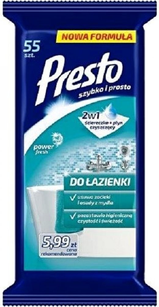 Čisticí ubrousky do koupelny PRESTO odstraňují všechny druhy nečistot, se kterými mohou mít běžné čistící prostředky velký problém. Vyznačují se jemnou, svěží vůní, takže koupelna je nejen čistá, ale i osvěžená. Jsou ideální pro čištění předmětů, jako jsou vany, sprchové vaničky, umyvadla a toaletní mísy. I když obsahují složky, které umožní rozsáhlé čištění různých povrchů, v žádném případě neško...