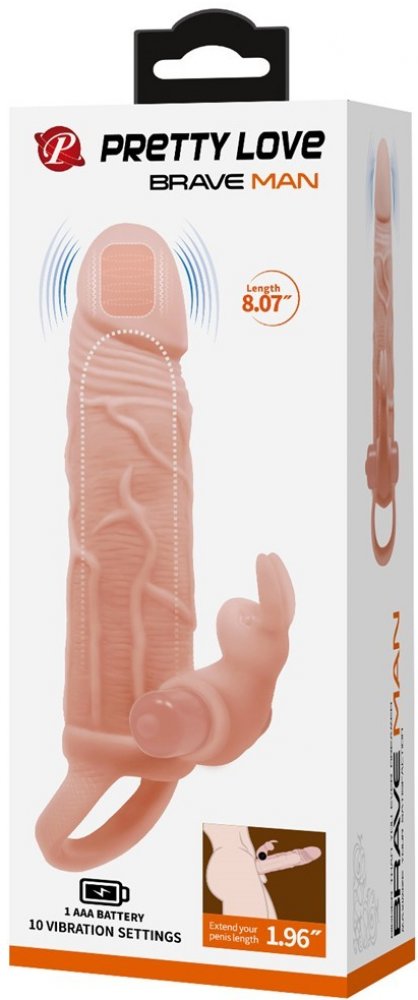 Pretty Love Brave Man - návlek na penis s vibracemi + 5cm