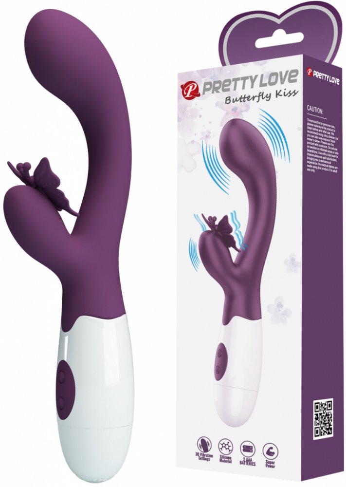 Pretty Love Butterfly Kiss vibrátor se svým speciálním designem a funkcemi zajišťuje maximální potěšení.Dvojitá stimulace: Současné vaginální a klitorální potěšení pro maximální rozkoš.30 vibračních módů: Široký výběr pro intenzivní stimulaci a smyslné experimentování.Dva motory: Samostatné motory v hlavě vibrátoru a rameni pro klitoris pro extra rozkoš.Příjemný materiál: Vysoce kvalitní silikon a ABS plast, který je jemný k pokožce.Na co si dát pozor:Používej lubrikační gel na vodní bázi pro příjemnější pocit.Před a po každém použití vibrátor důkladně očisti.Vibrátor pracuje na 2 AAA baterie, které je třeba pořídit zvlášť.Použití:Vlož 2 AAA baterie do vibrátoru podle návodu.Aplikuj lubrikační gel na povrch vibrátoru a intimní oblasti.Vlož vibrátor do vagíny tak, aby křídlo motýla bylo v kontaktu s klitorisem.Zapni a vyber si z 30 vibračních módů pomocí ovládacích tlačítek.Ovládání:Zapnutí: Stiskni vypínací tlačítko pro aktivaci zařízení.Přepínání módů: Přepínej mezi různými vibračními nastaveními pomocí tlačítek.Nabíjení:Vibrátor není nabíjecí; funguje na 2 AAA baterie, které je třeba zakoupit zvlášť.Obsah balení:1 ks Pretty Love Butterfly Kiss vibrátorProduktové vlastnosti:Materiál: Silikon (dle regulace EU, bez ftalátů)Funkce: 30 vibračních módůMotory: 2 samostatné motoryProvoz: 2 AAA baterieBarva: RůžováDoporučení pro čištění: Vibrátor důkladně omyj jemným mýdlem a teplou vodou, poté opláchni a nech uschnout. Doporučujeme: Používání speciálního čisticího prostředku (06302500000) - lze objednat samostatně.
