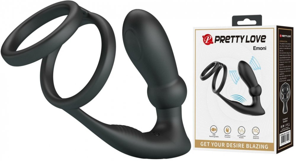 Pretty Love Emoni Penis Ring & Prostate Massager Black