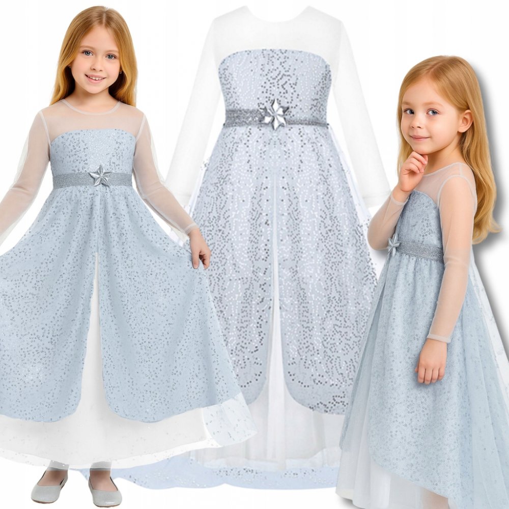 KOSTÝM PŘEVLEK ŠATY ELZA ELSA LEDOVÉ KRÁLOVSTVÍ TREN NA KARNEVALOVÝ PLES 128 / 134 CM (S VISAČKOU 140)❄ Šaty reprodukovaná podle podoby šatů kultovní hrdinky z filmu „Ledové Království“