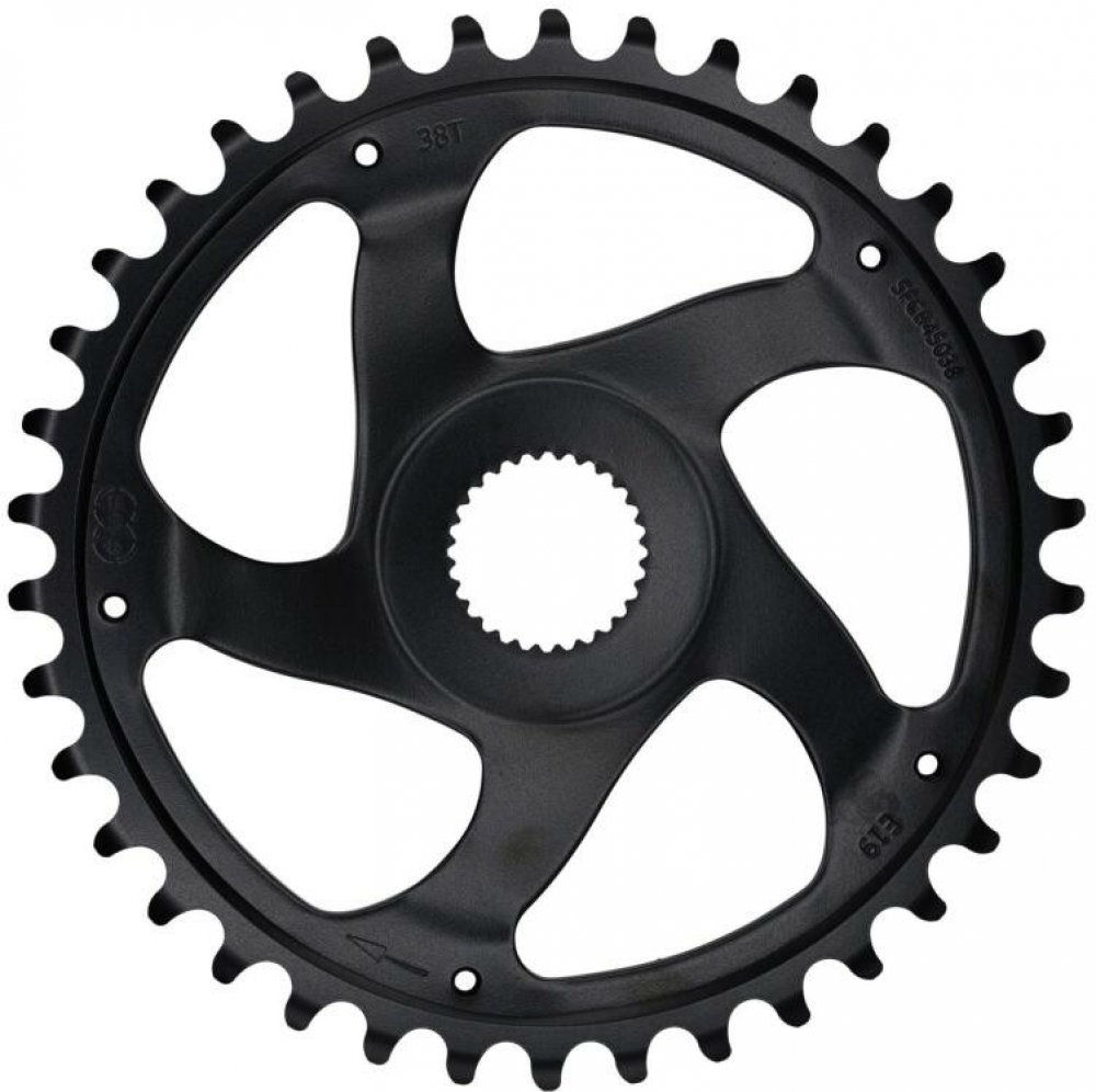 Převodník s 38 zuby z materiálu CrMo pro systémy Bosch Gen 4, kompatibilní s většinou 1-12 rychlostních řetězů, s přímou montáží a řetězovou linkou 50 mm.
