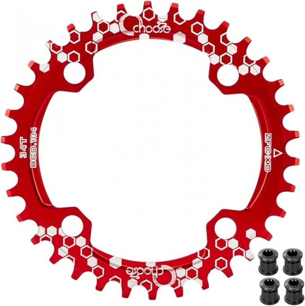Barva: červená Materiál: hliník Velikost: 34 T Širší zuby a užší ozubená kola jsou určena pro horské kolo Je tichý a velmi dobře se otáčí s řetězem, který nespadne z korunky ani při tvrdohlavém používání 4mm pevný hliníkový řetěz 7075-T6 zajišťuje dlouhou životnost, žádné tlakové body a je odolný proti opotřebení a korozi Kompatibilní s horskými trojpřevodníky Shimano/FSA/Sram pro 9/10/11rychlostní kliky a kola BCD 104