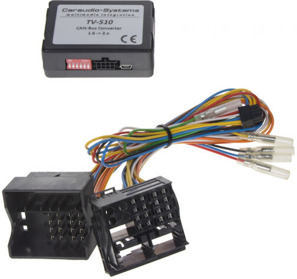 Tento převodník slouží k převodu signálu ze sběrnice CAN-BUS verze 1.6 do nové verze signálu CAN-BUS 2.0, vhodného pro navigační systémy RNS-510 (MFD3), RNS315 a RNS310 nebo rádio RCD510, RCD310. Převodník zajistí převod těchto signálů:zapnutí zapalování (ACC), osvětlení, zpátečka, rychlostní impulsy a multifunkční volant. Většinou nefunguje MAXI-DOT displej. Zároveň odblokuje obraz za jízdy.