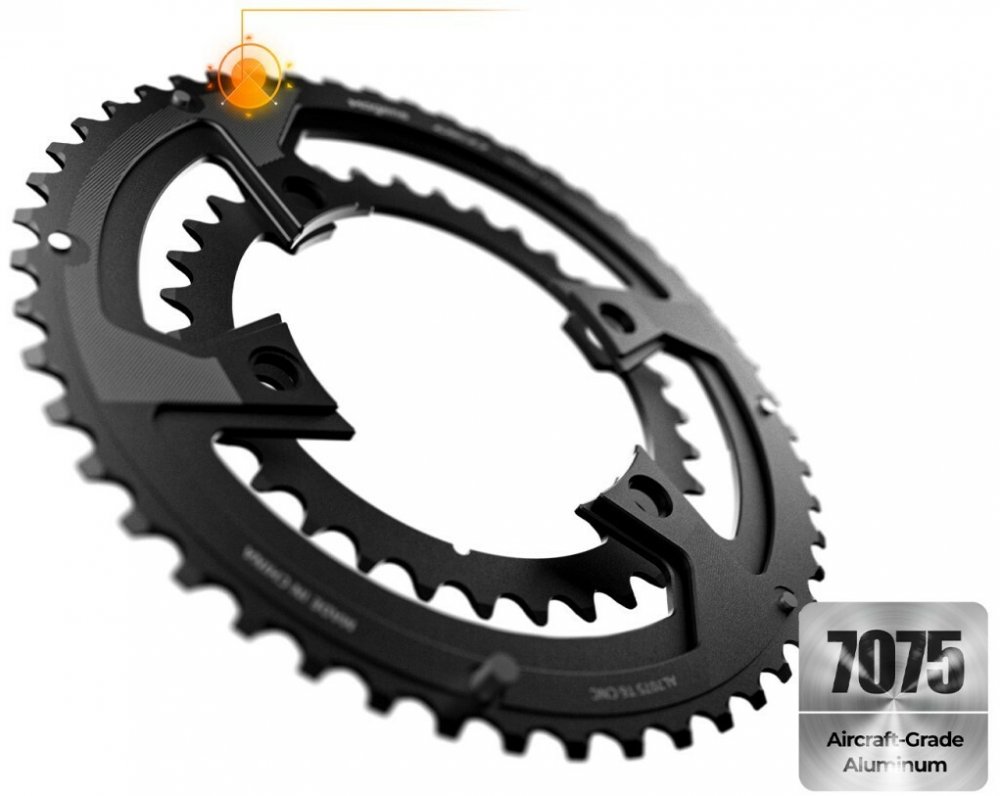 - Letecká hliníková slitina 7075 má vynikající fyzikální vlastnosti, odolnost proti oděru, deformaci, vysokou tuhost a ultralehkou hmotnost. Převodníky jsou vyrobeny z hliníkové slitiny 7075, díky čemuž váží převodníky QED pouze 138 g (50/34) při zachování tak vynikajících vlastností.