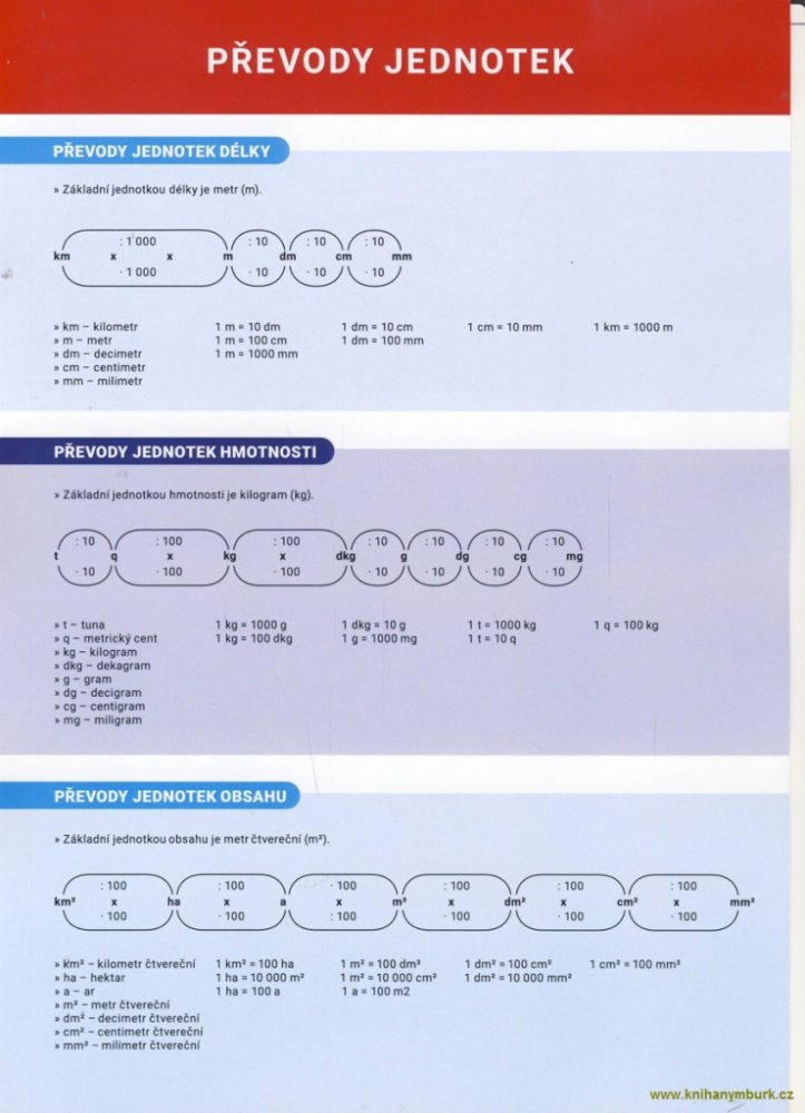 Přehledně zpracovaný přehled učiva pedagogy podle potřeby žáků. Přehledová tabulka - Převody jednotek (délky, hmotnosti, obsahu, objemu a času) Přehledová tabulka slouží pro žáky prvního a druhého stupně. Přehledová tabulka je pomocníkem pro žáky se speciálními vzdělávacími potřebami. Přehledová tabulka je vhodná pro žáky připravující se na víceletá gymnázia .