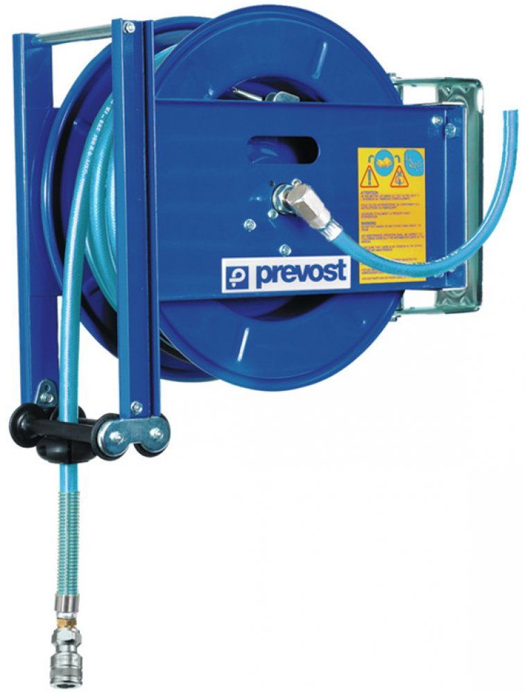Otevřený navíjecí hadicový buben pro distribuci vody na pracovišti od francouzského specializovaného výrobce Prevost.