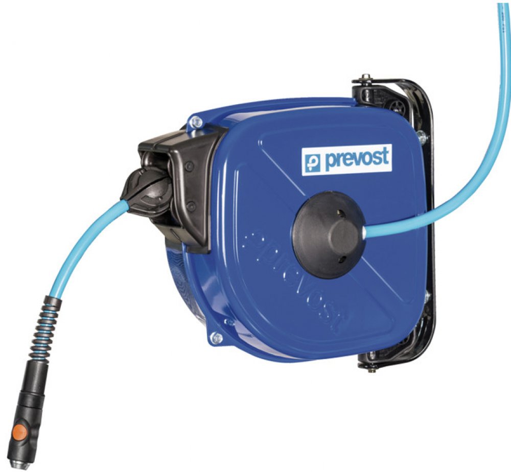 Kompaktní průmyslový navíjecí hadicový buben pro distribuci stlačeného vzduchu na pracovišti od francouzského specializovaného výrobce Prevost Tyto kompaktní hadicové navijáky jsou určeny pro distribuci stlačeného vzduchu pro pneumatické nástroje na blízkém pracovišti. Hadicový naviják je vybavený tvrdou pružnou polyuretanovou hadicí s tkaninovým opletem. Pouzdro z pozinkované oceli s elektrostati...