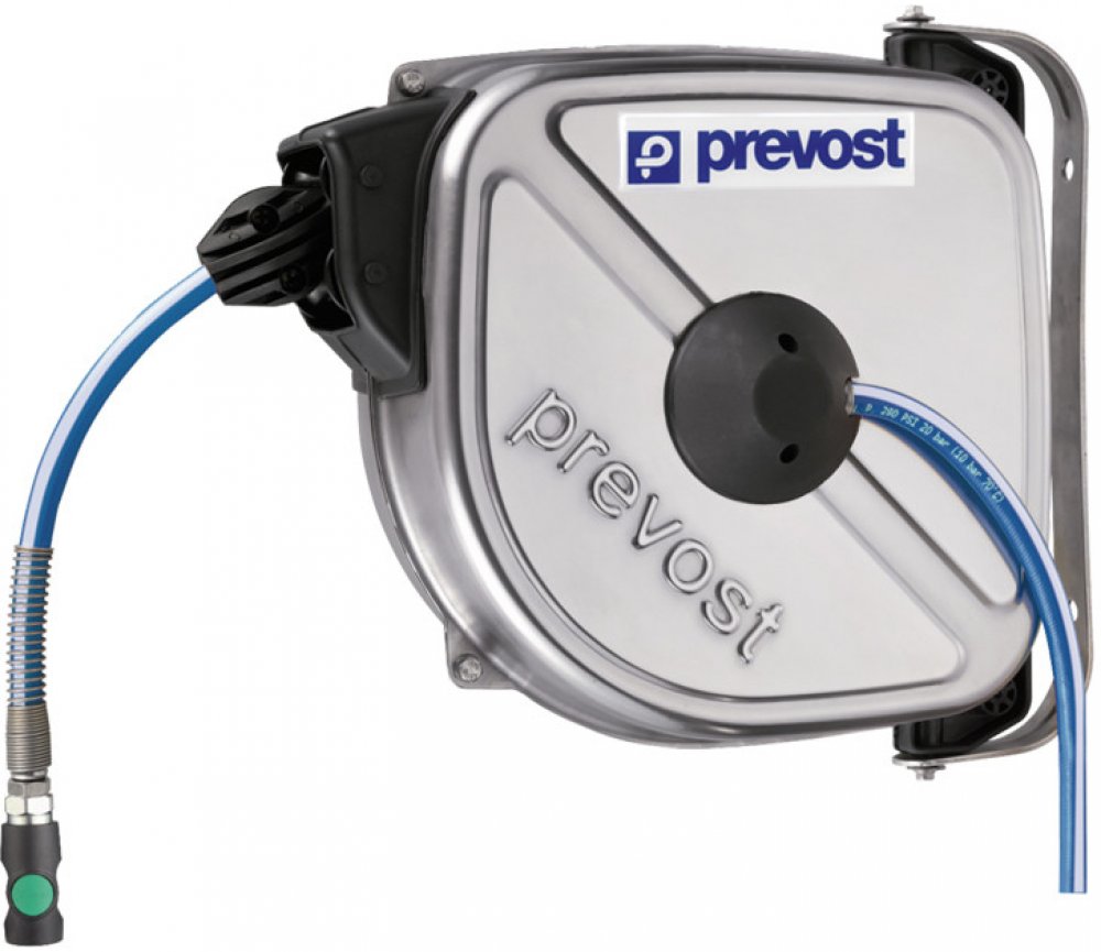 Kompaktní navíjecí hadicový buben pro distribuci stlačeného vzduchu na pracovišti od francouzského specializovaného výrobce Prevost. Tyto kompaktní hadicové navijáky jsou určeny pro distribuci stlačeného vzduchu pro pneumatické nástroje na blízkém pracovišti. Hadicový naviják je vybavený tvrdou pružnou polyuretanovou hadicí se specifickým textilním opletem, který odolává teplu a vlhkosti. Pouzdro ...