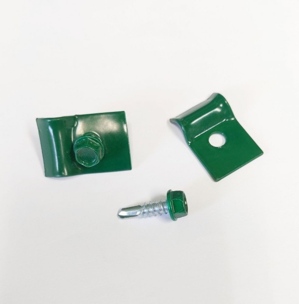 Příchytka plechová zahnutá 20x27mm, vč. šroubu - zelená
