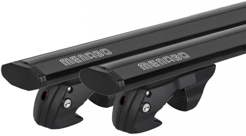 Hliníkové střešní nosiče - příčníky na hagusy Menabo AERO ALU s plochým aerodynamickým profilem tyčí AERO Blade. Pevné kvalitní patky s ochranou proti odcizení díky odolným zámkům.