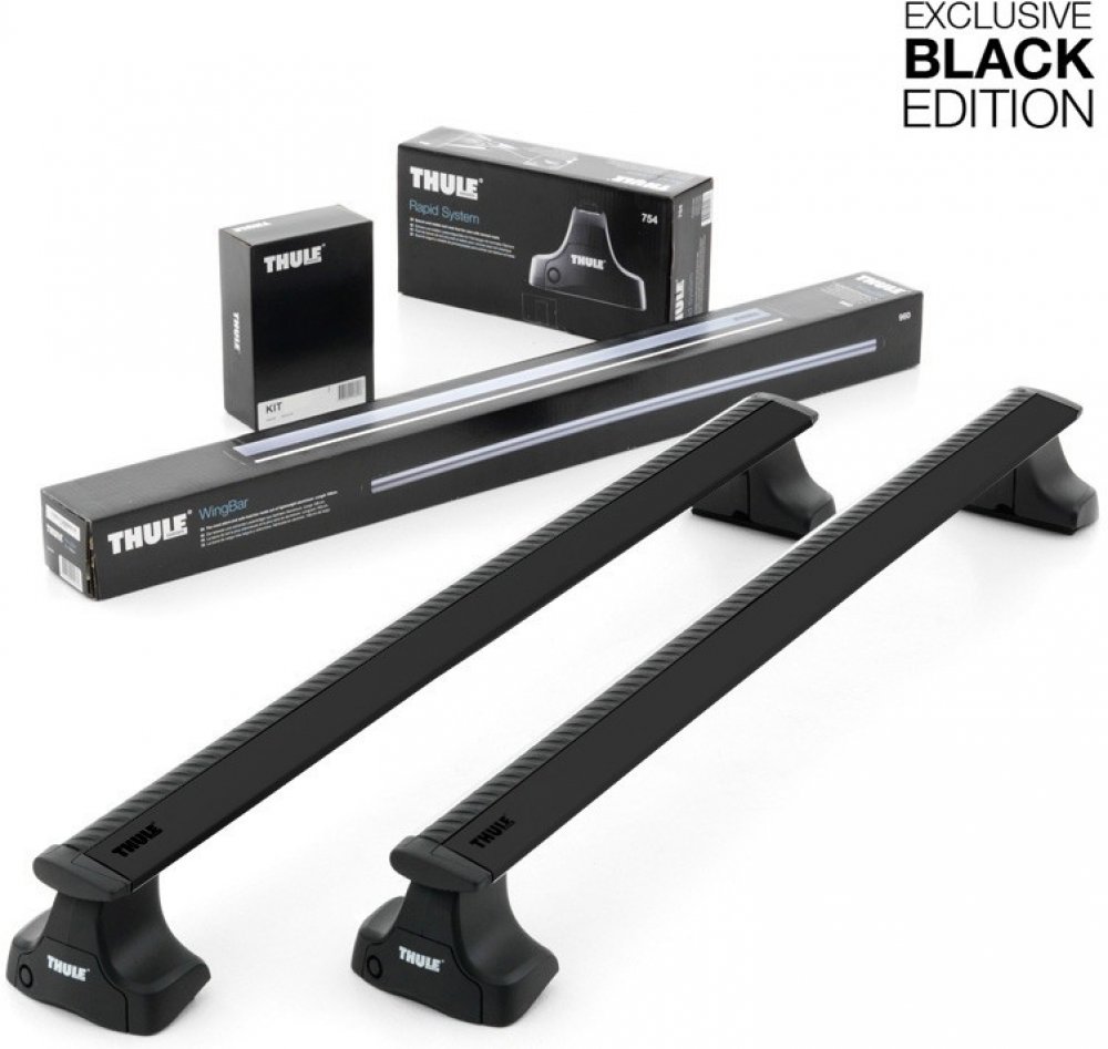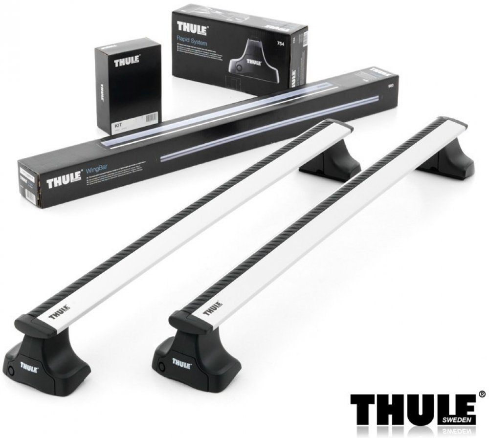 Sada obsahuje: 4 ks nosných patek Thule 754, 2 ks tyčí (příčníků) Thule WingBar 969 délky 127 cm, 4 ks kitu (úchytů) Thule 1711.