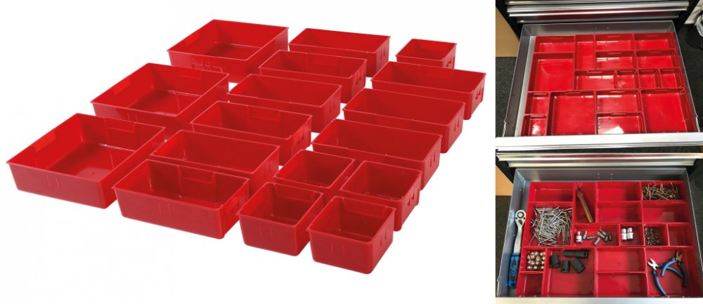Přihrádky plastové, pro dílenský vozík, sada 17 dílů - BGS 9550