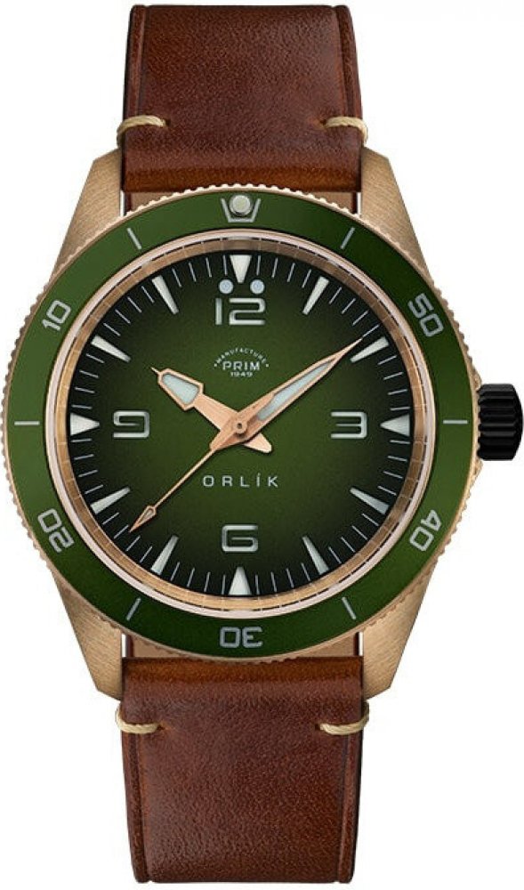 Prim kůže bronz 300 m safírové pánské automatické Orlík kulaté hnědá zelená 2 cm