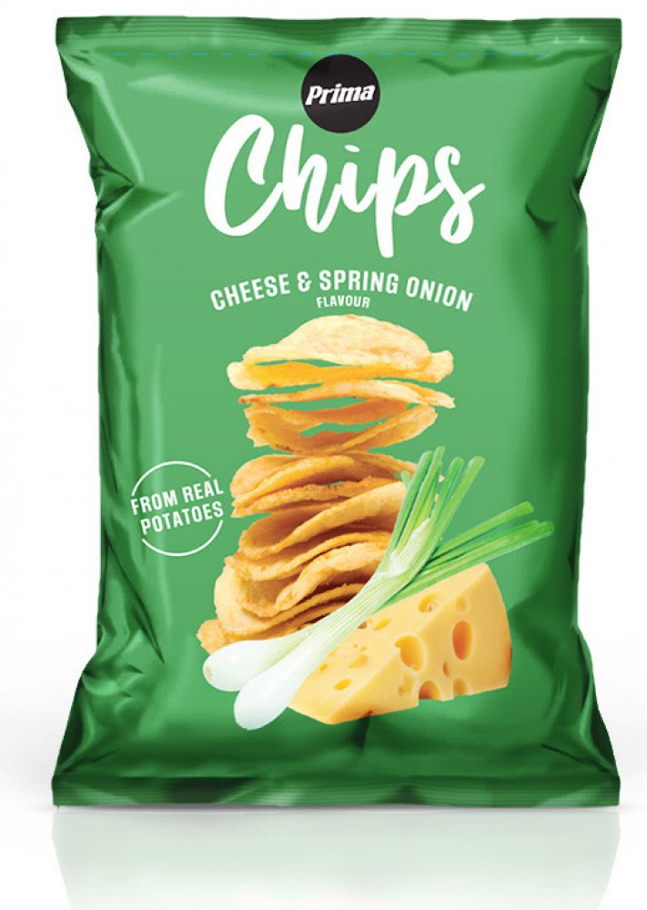 Prima chips s příchutí sýru a jarní cibulky 50 g/24 ks balení