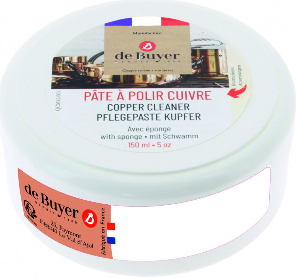 Vlastnosti:- pro měděné nádobí- snadné a jednoduché použití- dejte malé množství na měkkou houbu navlhčenou v horké vodě a kruhovým pohybem aplikujte na omyté nádobí, dokončete opláchnutím a osušením nádobí- s lešticí pastou de Buyer můžete obnovit původní lesk nádobí a dalšího měděného náčiní a zachovat jejich lesk- objem: 150 ml
