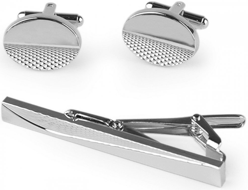 Manžetové knoflíky s kravatovou sponou v kovovém provedení skvěle ozdobí každého muže. Tato sada je vhodná pro širokou škálu příležitostí, od obchodních setkání po slavnostní události, jako jsou svatby či významné oslavy. Knoflíky i spona jsou z kvalitního kovu, mají precizní provedení.