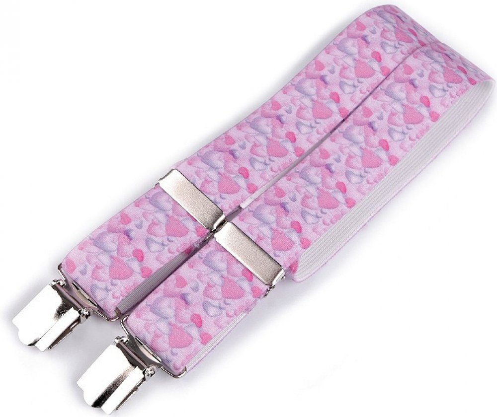 Dětské šle o délce 60 cm a šířce 2,5 cm s různými potisky. Popruhy jsou různě barevné. Natištěné motivy jsou kvalitní, neloupou se ani neodírají. Šle jsou vyrobeny ze 100% polyesteru.