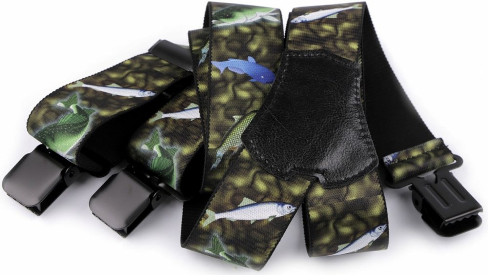 Kšandy s rybím potiskem potěší všechny rybáře. Kšandy bývají nedílnou a zároveň praktickou součástí jejich oblečení.