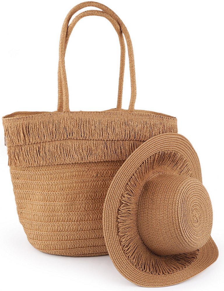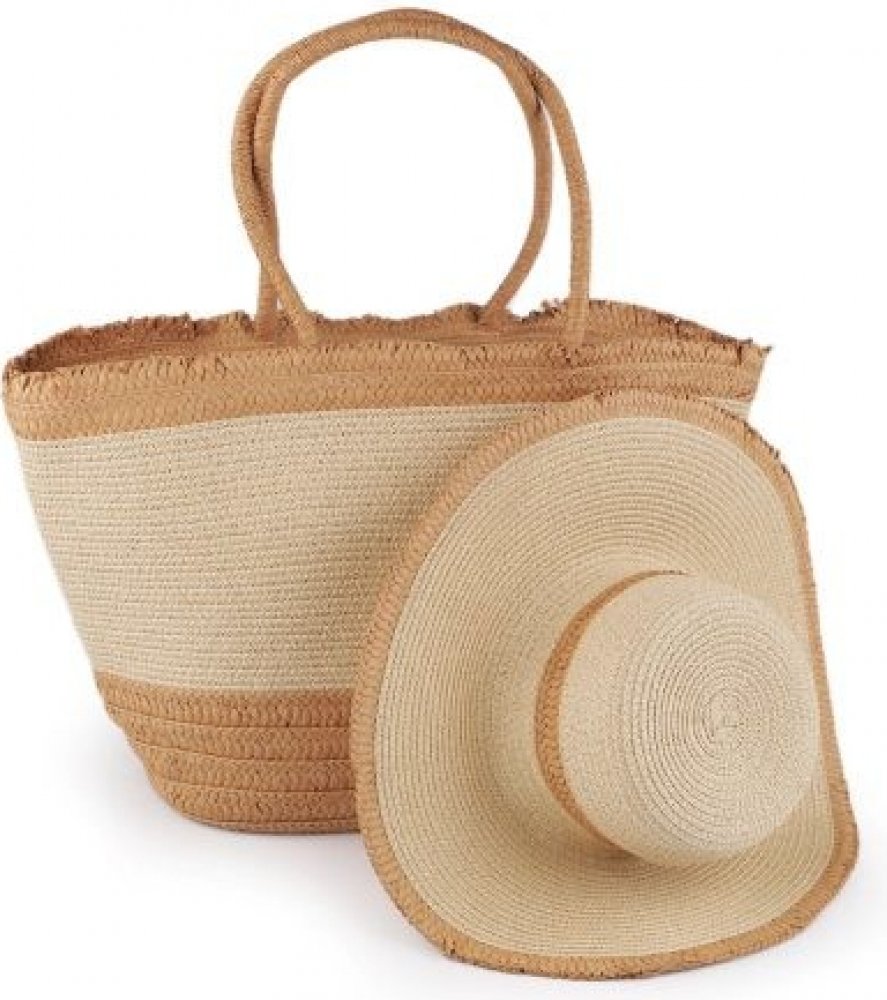 Prima-obchod dámský klobouk slamák a plážová taška sada 2 hnědá přírodní