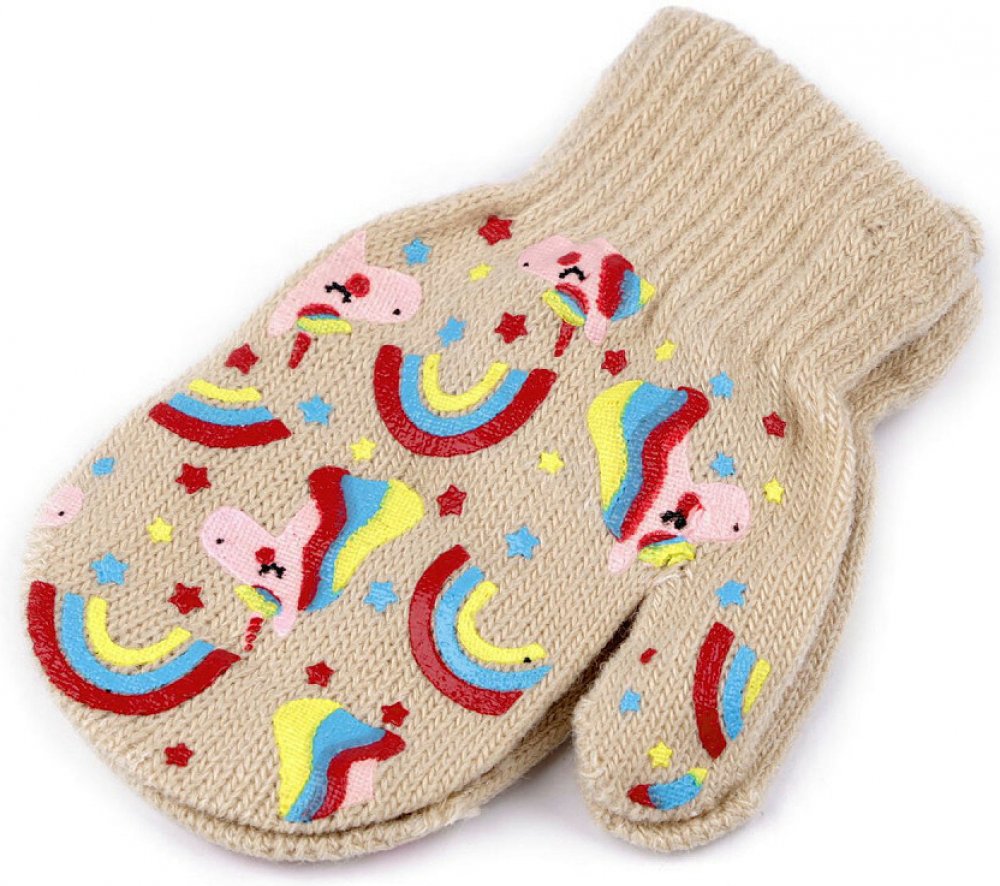 Prima-obchod Dětské pletené rukavice palčáky béžová světlá jednorožec