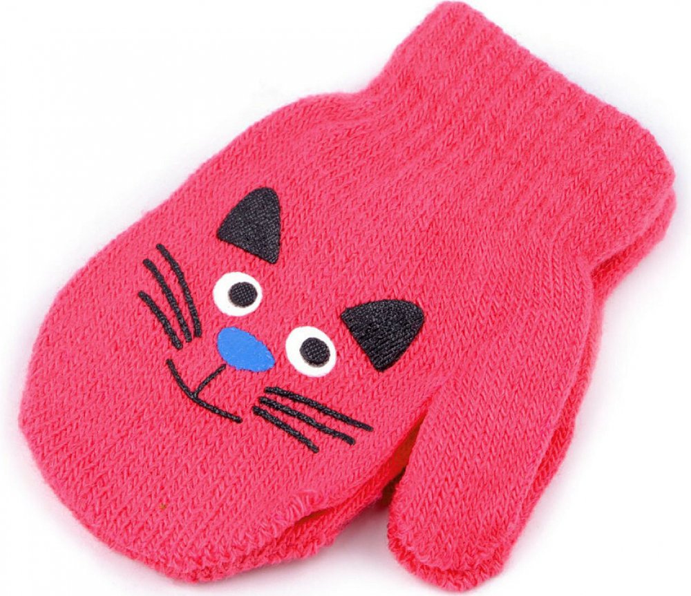 Prima-obchod Dětské pletené rukavice palčáky pink kočka