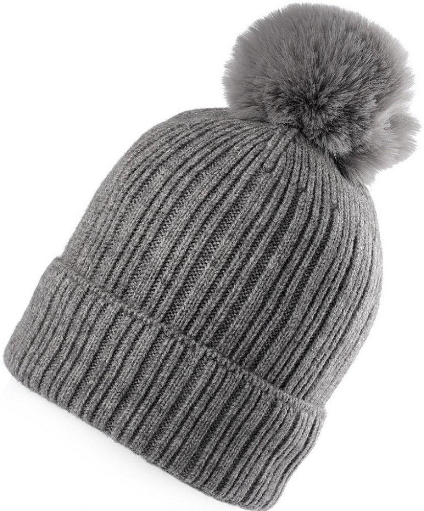 Řádkovaná čepice s velkou bambulí vás bude hřát celou zimu, je příjemně měkká, velice kvalitní. Má ohrnutý okraj, uvnitř má jemný plyš, jenž je velice příjemný na dotek. Bambule věrně imituje pravou kožešinu.