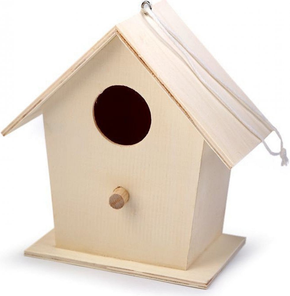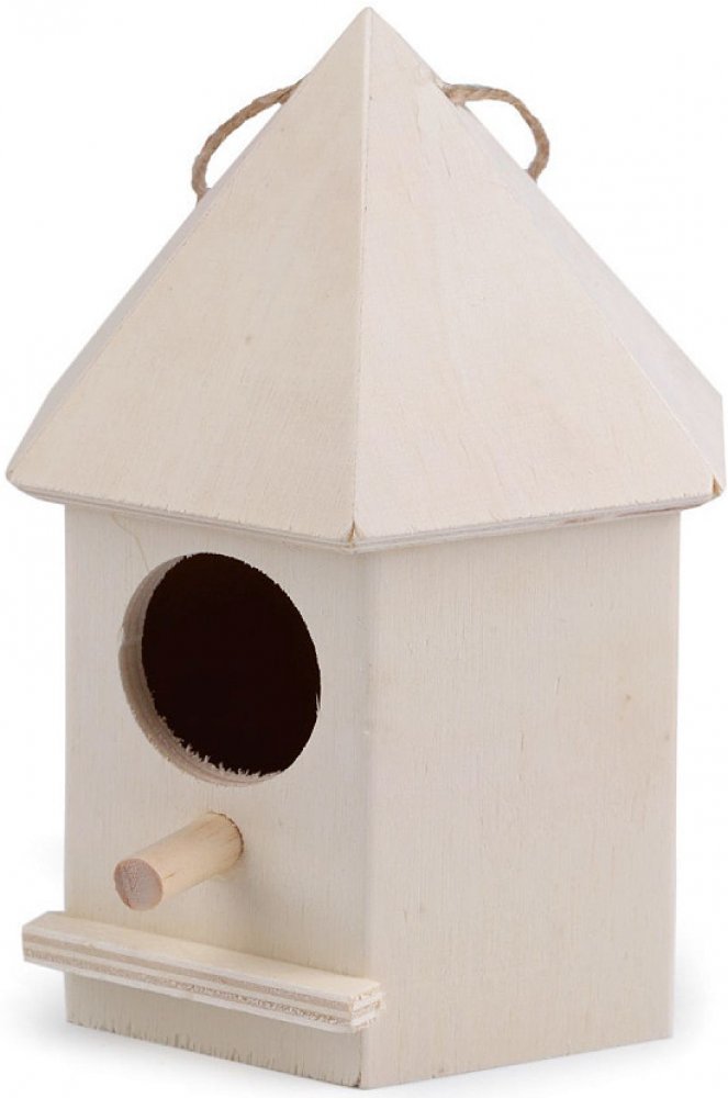 Dřevěná ptačí budka ozdobí terasu, balkón i stromy v zahradě. Díky poutku ji pověsíte kamkoliv. Můžete ji použít jako samostatnou dekoraci nebo dozdobit. Dá se domalovat akrylovými či temperovými barvami, popisovači, glitrovými lepidly, technikou decoupage aj.
