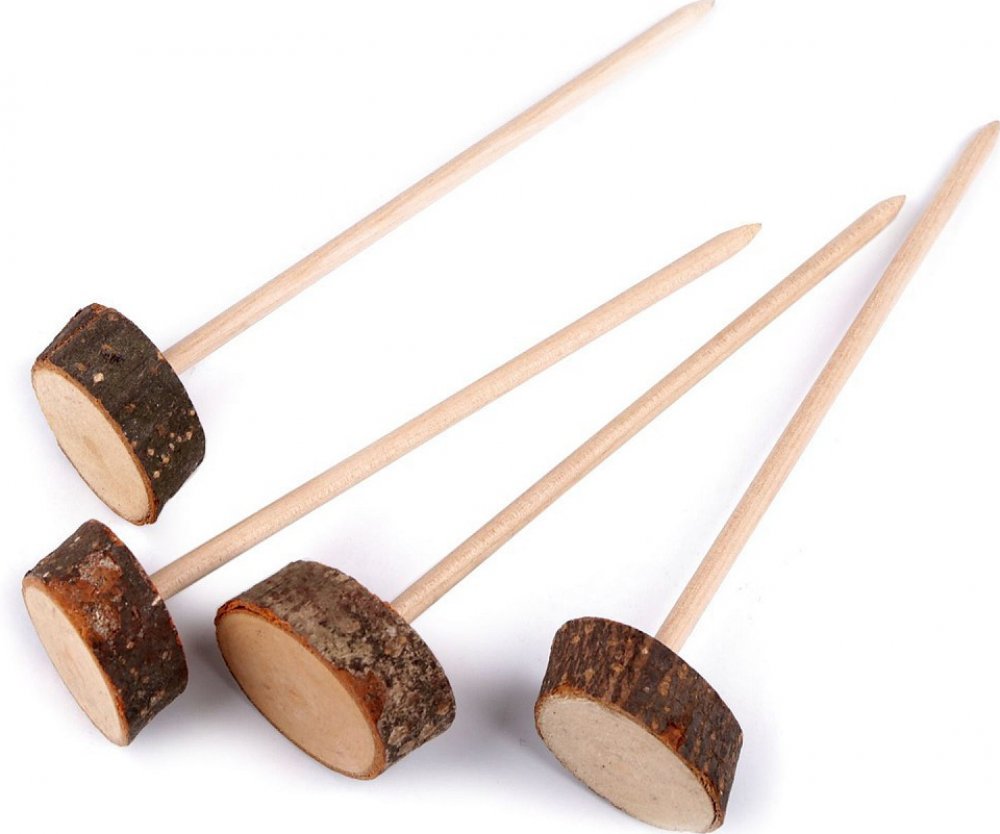 Na horní konec se špičkou můžete přilepit dřevěnou hlavičku nebo napíchnout polystyrenovou kuličku. Zbytek těla můžete uplstit, ušít, záleží na vaší kreativitě a fantazii. Podstavec je přírodní, s kůrou, můžete využít i jako kmen při výrobě...