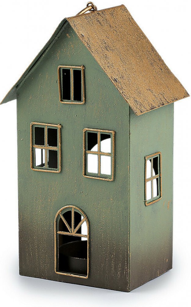 Stylový kovový domeček na svíčku vnese do vašeho domova útulné světlo a hřejivou atmosféru. Díky jemné patině a kvalitní kovové konstrukci se stane originálním doplňkem každého interiéru. Vhodný pro svíčky s průměrem až 5 cm. Lze postavit na stůl, poličku nebo pověsit díky praktickému očku. Skvěle ladí i s dekorativním stromečkem ve stejném designu – ideální pro zimní a vánoční výzdobu.