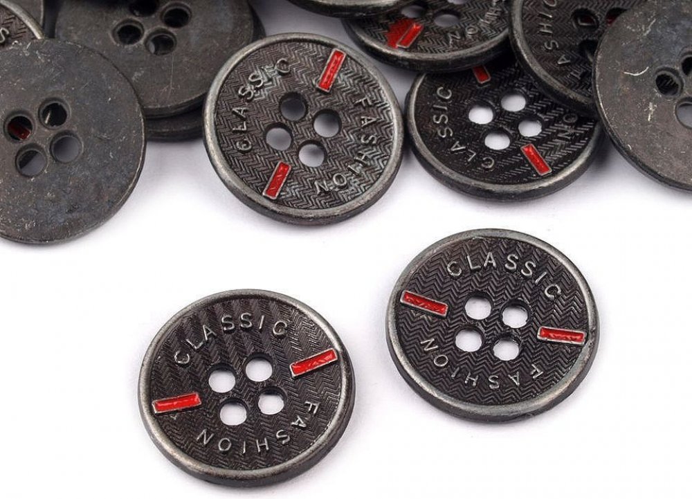 Knoflíky jsou vyrobené z nemagnetického kovu. Zdobí je nápisy "classic" a "fashion". Jsou čtyřdírkové.