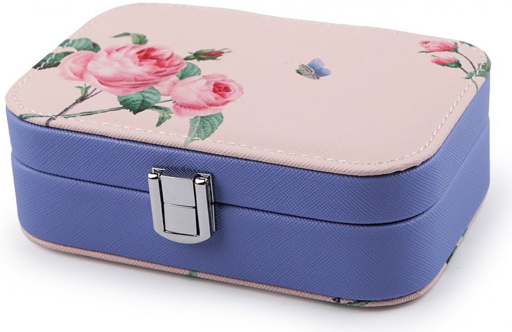 Malá šperkovnice s potiskem přírodních motivů má kovové zapínání, spolehlivě ochrání šperky před nepříznivými vlivy okolí jako je světlo nebo vlhkost. Uvnitř šperkovnice jsou 2 přihrádky s polštářky na náušnice, oddíl na prsteny a zrcátko. Šperkovnice má velice kvalitní a precizní provedení.