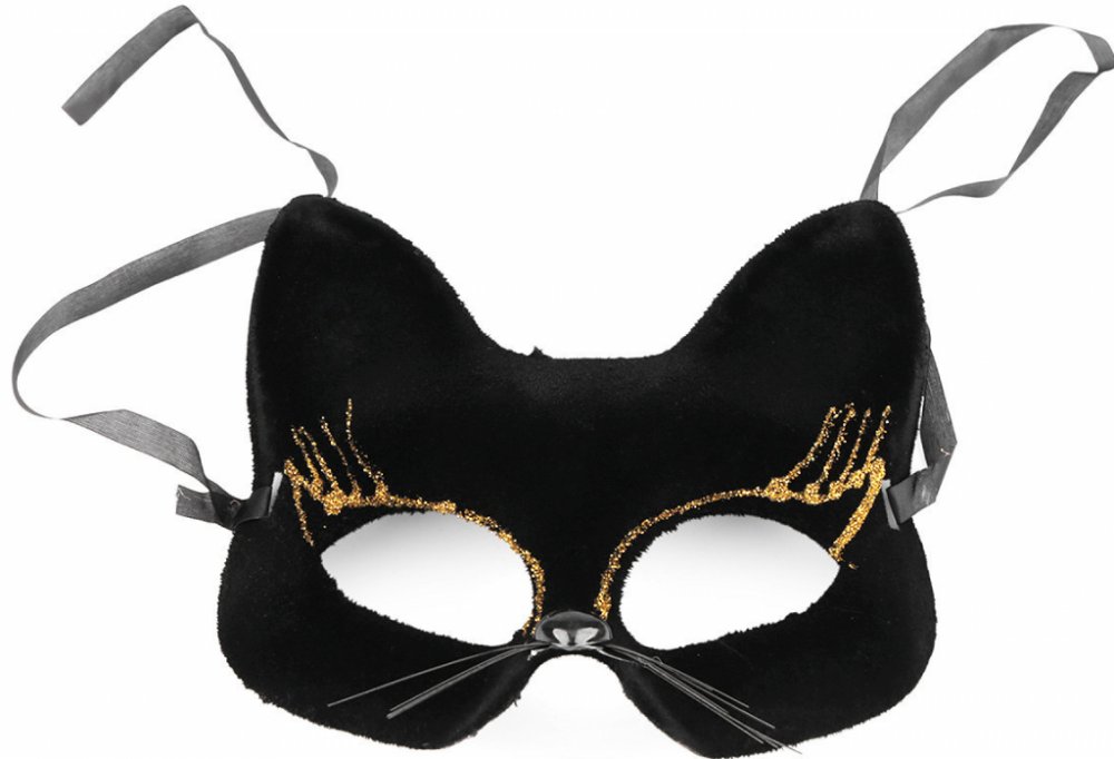 Prima-obchod maska škraboška sametová s glitry kočka 2 černá zlatá