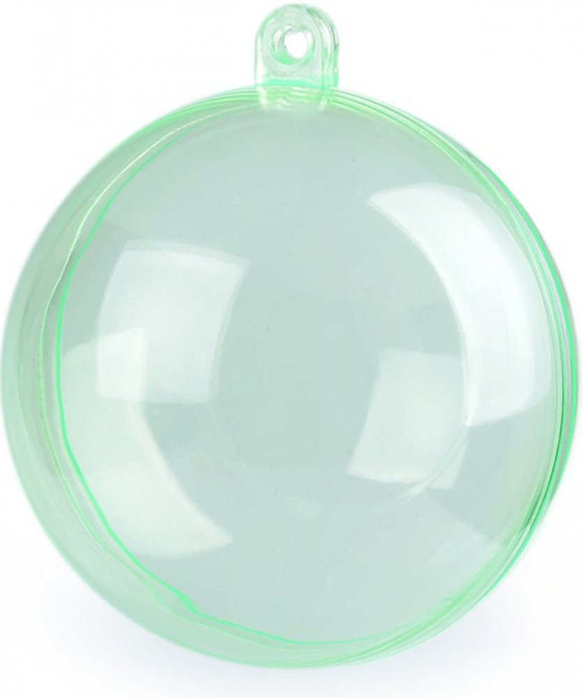 Průhledná plastová koule se skládá ze dvou částí, které lze spojit a pomocí očka zavěsit jako dekoraci. Jedná se o polotovar, který je určen k dozdobení např. jej můžete obháčkovat, dekorovat metodou quilling, ubrouskovou technikou, dozdobit glitry atd. Ve fantazii se meze nekladou.