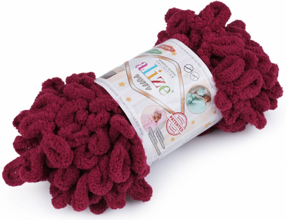 Příze Alize Puffy je měkká, chlupatá žinylková příze s velkými očky. Na pletení nepotřebujete jehlice ani háček - proplétají se jednotlivá očka. Je vhodná na pletení dek, šálů apod.