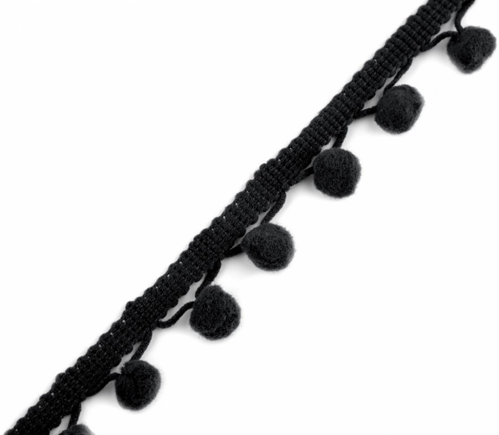 Prima-obchod Prýmek šíře 20 mm s bambulkami Ø10 mm, barva 12 černá
