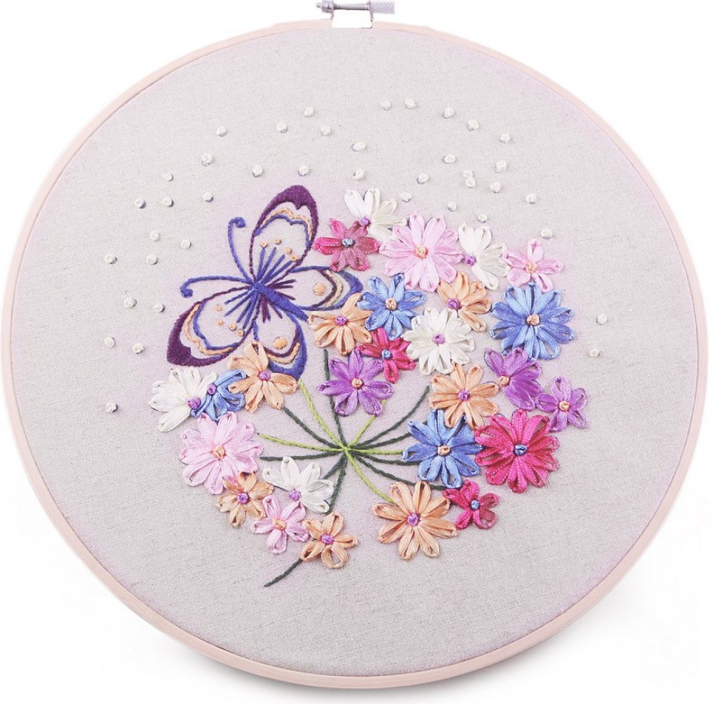 V sadě najdete tkaninu s předlohou, sadu barevných přízí, obrázkový návod, vyšívací jehly a bambusový kruh, který vám poslouží rovněž jako rámeček pro hotový obrázek.