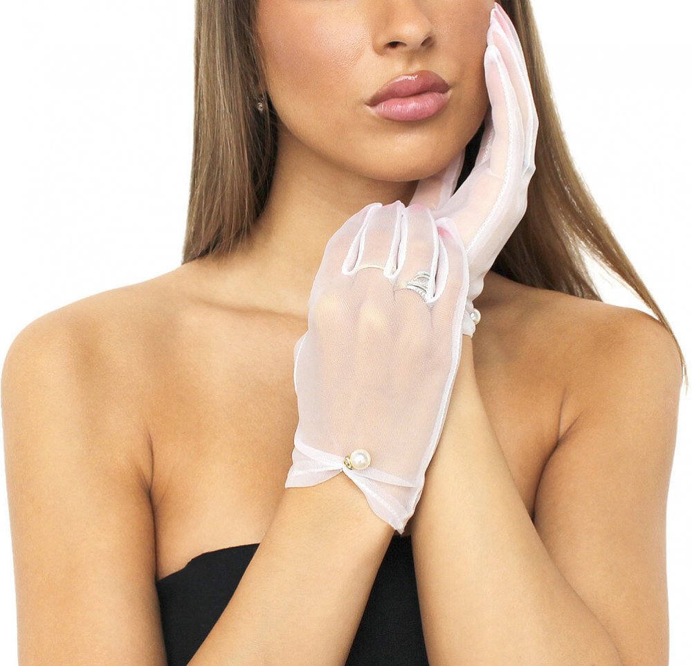 Prima obchod Společenské rukavice tylové s perlou barva bílá