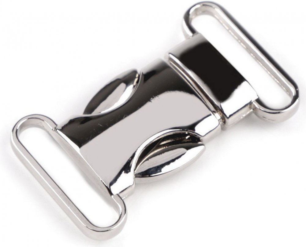 Celokovová spona se pyšní svou bytelností a vysokým zrcadlovým leskem. Skládá se ze dvou částí, které do sebe zacvaknete. Využijete ji jako netradiční a elegantní zapínání lacláčů a šatů, ale také na výrobu ledvinkových opasků, brašen, batohů apod.