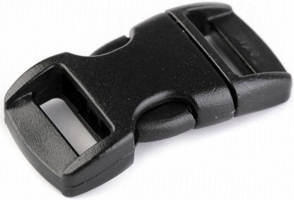 Plastová spona neboli trojzubec má mírně prohnutý tvar a díky tomu skvěle poslouží na výrobu outdoorových náramků spletených ze šňůr nebo ozdobných náramků ze stuh. Je vhodná také k výrobě ledvinkových opasků, batohů, kabelek apod.