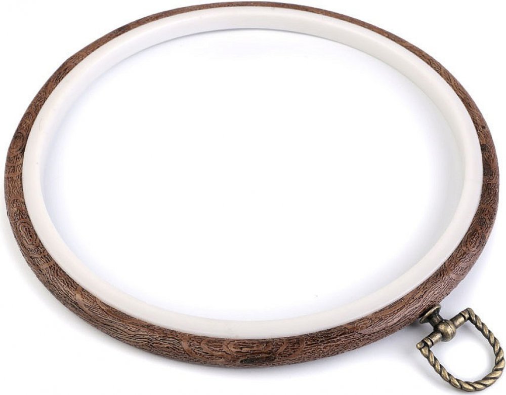 Tento kruh slouží převážně k uchycení látky, na kterou budete vyšívat obrázek. Vyšívací kruh je vyrobený z pryže, která imituje dřevo, a plastu. Je opatřen kovovým šroubkem, pomocí něhož můžete kruh pověsit na stěnu.