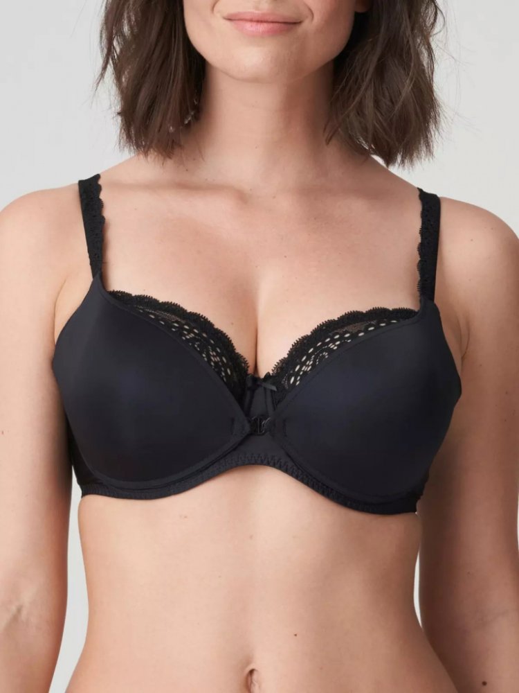 Černá luxusní kojící podprsenka od prémiové značky Primadonna. Hladké vyztužené košíčky mají na středu odepínání na plastové háčky, které lze snadno odepnout a pohodlně nakojit miminko. Na vnitřní straně ukrytý průstřih z příjemné krajky pro sexy vzhled.