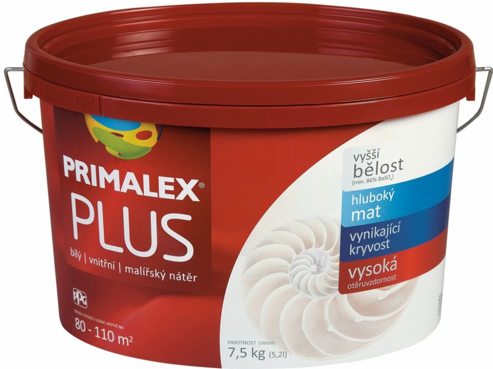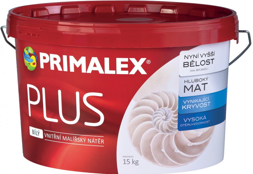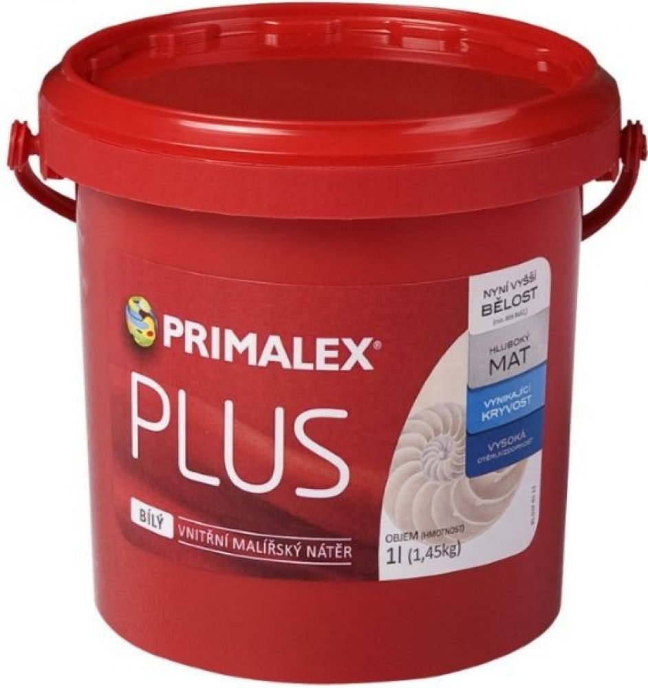 Primalex Plus Bílý nejprodávanější a nejoblíbenější produkt značky Primalex v oblasti vnitřních malířských nátěrů. Vylepšená receptura zachovává osvědčené vlastnosti výrobku a nově garantuje jeho vyšší bělost (min. 86% BaSO4) a hluboce matný konečný vzhled.