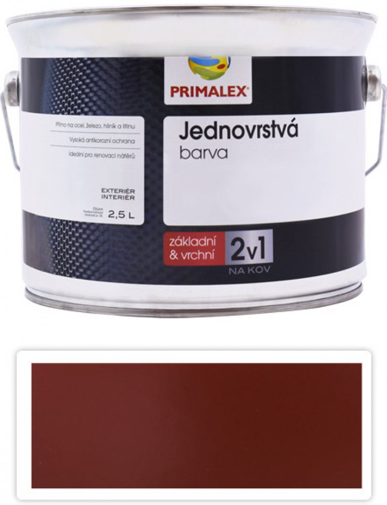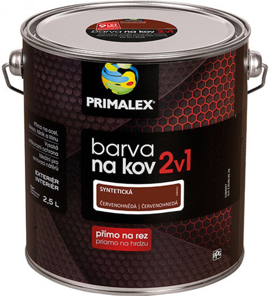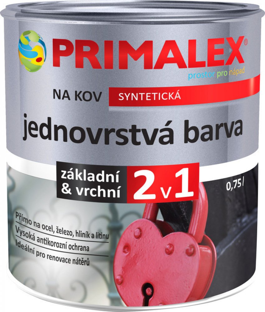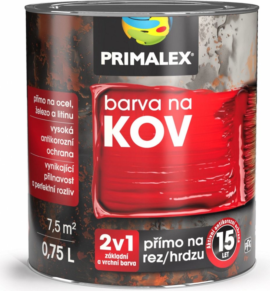 Primalex Barva na Kov 2v1 je určena k přímým ochranným nátěrům ocelových, železných, hliníkových a litinových povrchů ve venkovním i vnitřním prostředí bez nutnosti použití základních barev. Zejména vhodná je pro obnovu nátěrů na zkorodovaných podkladech. Dokonalá přilnavost k podkladu a vysoký stupeň antikorozní ochrany zaručují dlouhodobou životnost nátěrů. Příjemný pololeský finální vzhled nabízí také dosažení zajímavých dekorativních efektů spolu s vysokou mechanickou odolností nátěru.