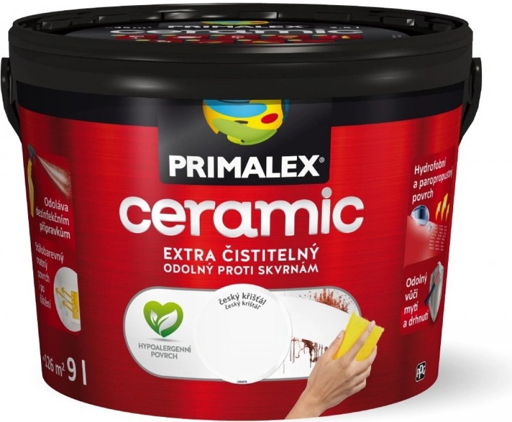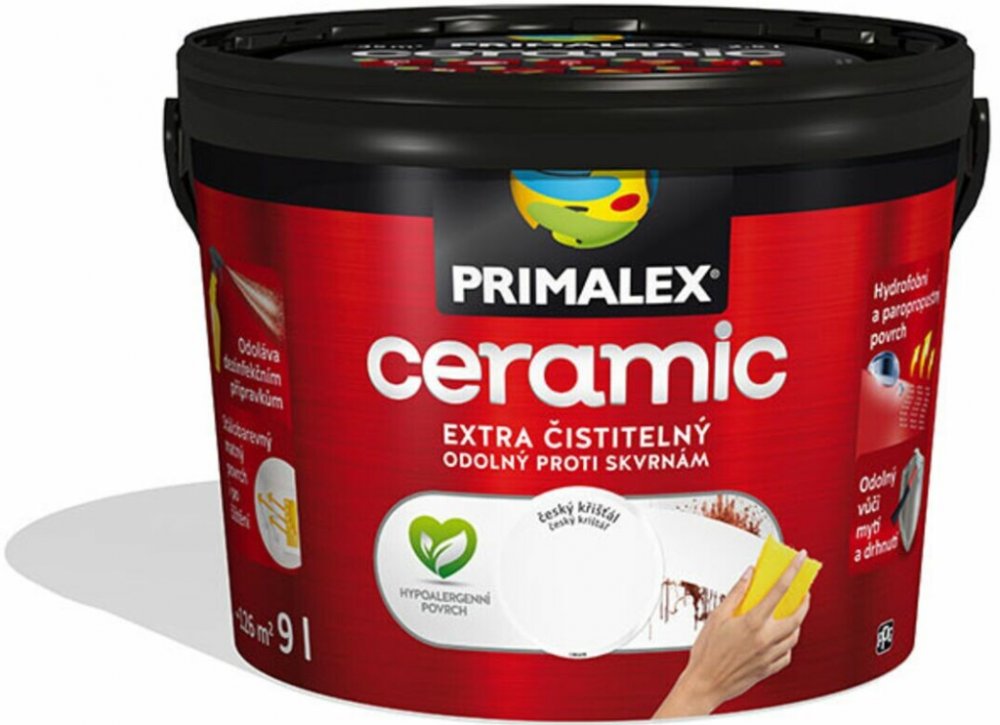 Omyvatelná, ale i čistitelná interiérová barva Primalex CERAMIC představuje moderní generaci speciálních interiérových barev, které použitím inovativních hydrofobních částic minimalizují průnik tekutých nečistot do hloubky a vytvářejí tak elegantní nátěrový film blížící se svou odolností a čistitelností keramickým povrchům. Běžné skvrny, které se mohou objevit na stěnách např. od kečupu, hořčice n...